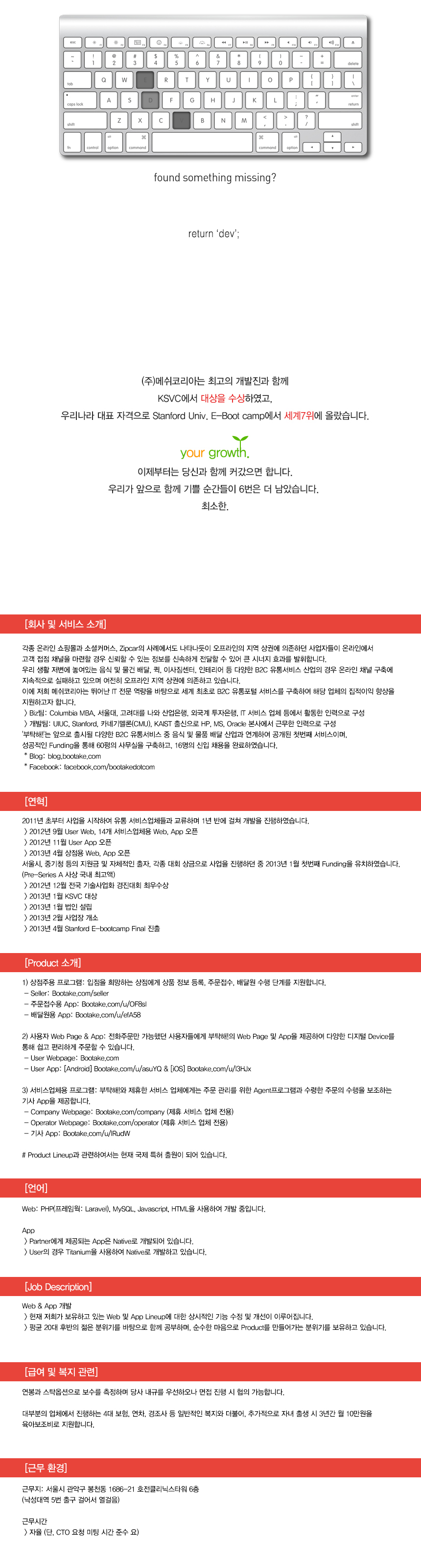 현재 높은 수준의 개발자를 구인 중에 있습니다.