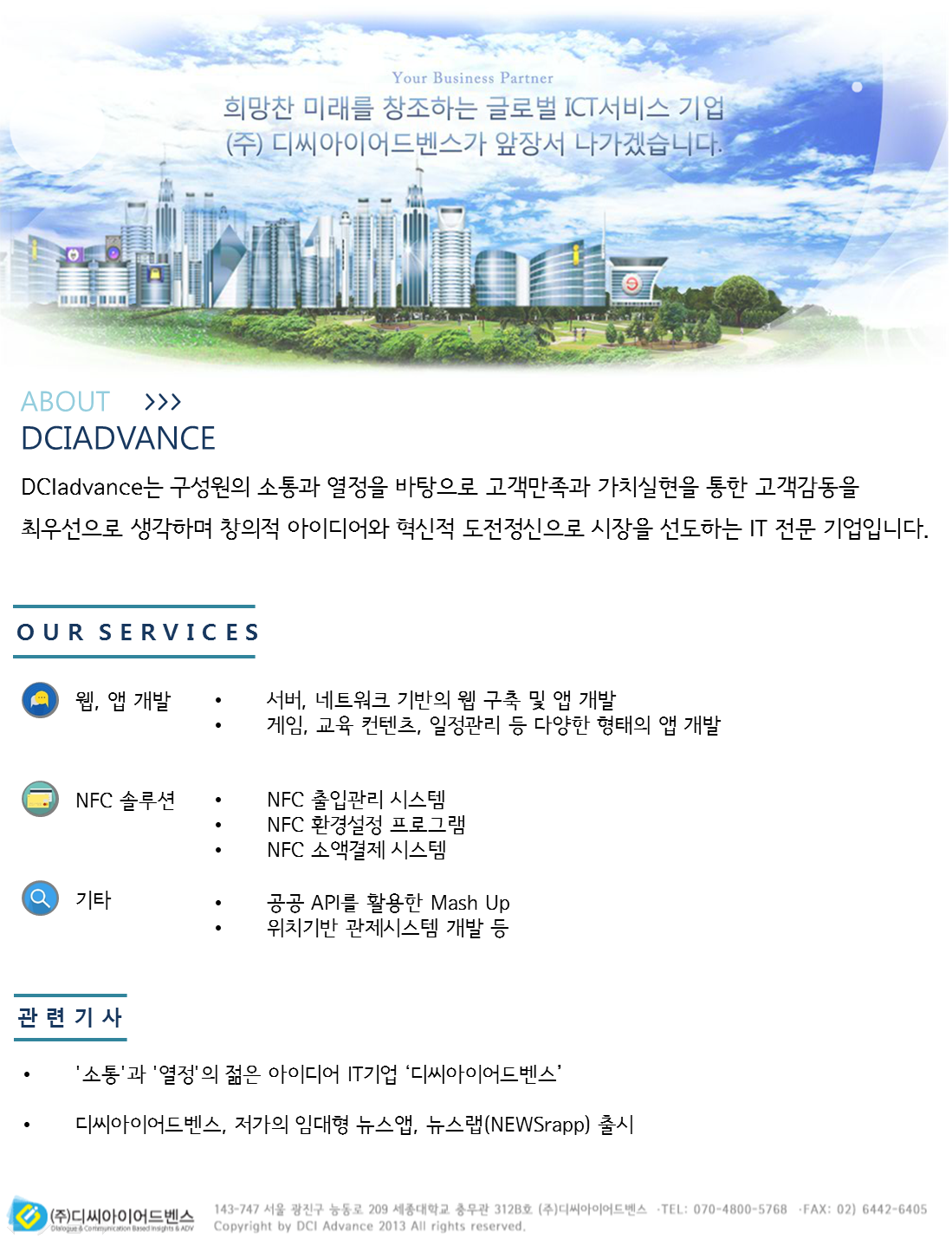 DCIadvance에서 소프트웨어를 정직한 가격으로 개발해드리고 있습니다.