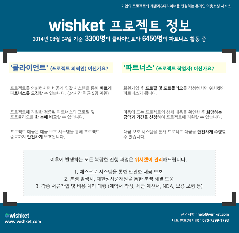 2. 위시켓은 에스크로 시스템을 통하여 대금을 보호하며, 프로젝트 미팅&계약을 주선하고 대행해드립니다.
