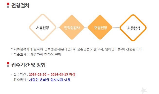서류전형→인적성검사 → 면접전형 → 합격자발표입니다.