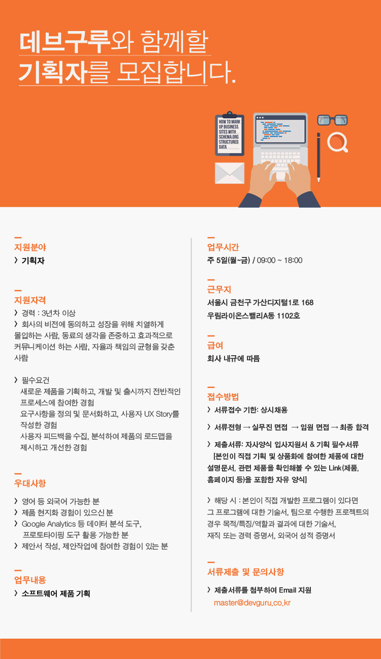 [데브구루] 2016년 기획자 경력 채용 (~상시채용)